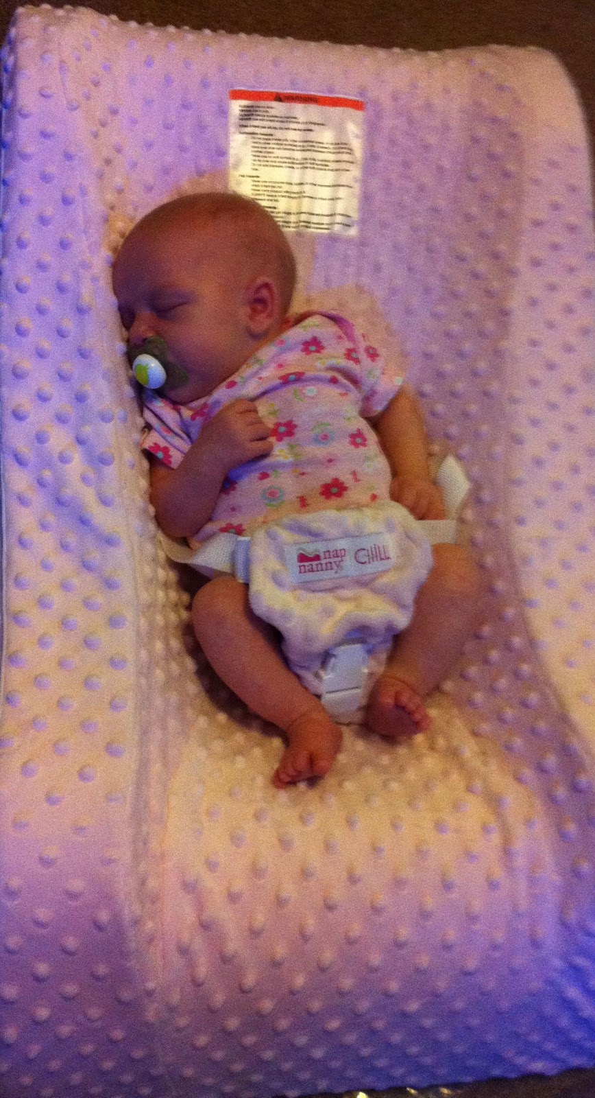 I received an email from my mother with a link to the 'Nap Nanny Chill'. She suggested I try it since nothing seemed to be working. I did a bit of research on the chair and decided that it was worth a try. it holds baby at a 30 degree angle; perfect for babies with reflux. I received the chair a few days later. It is very lightweight, has a soft waterproof liner, and the cover unzips easily for washing. I washed the cover and put my little one in there. It was like a chorus of angels sang "Hallelujah". She didn't cry when I put her down. I walked away fully expecting to hear that cute little shriek of hers indicating that she didn't feel a warm body next to her. Nothing. Perfectly content. We've had the Nap Nanny for a couple of weeks now and she loves it. I can place her in it and take a shower without having a screaming baby and my house doesn't look like it was raided by the police.